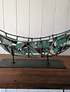 Bote de fierro que se destaca por ser una decoración autentica e identitaria, ¿diseñado y elaborado a mano por la destacada escultora local, quien esta inspirada principalmente en los elementos naturales y culturales de nuestro Sur de Chile.